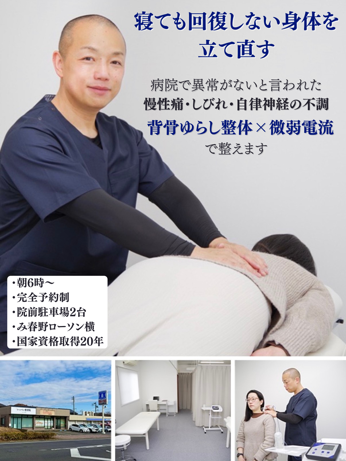 当院では、強く揉んだり、バキッと矯正したりする施術は行いません。