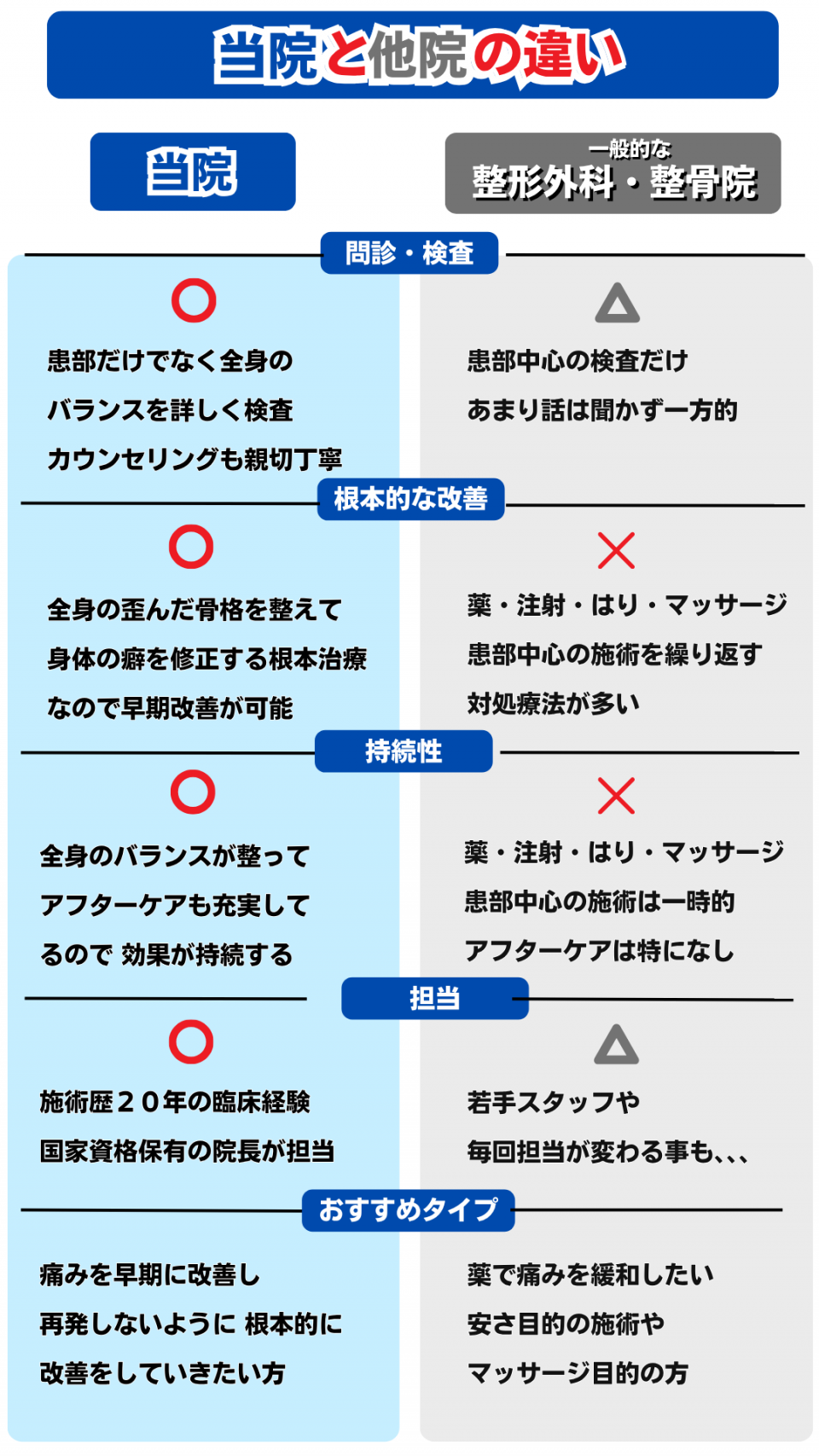 こちらでは他の治療院や病院でも詳しく説明されなかった体の仕組みからくる痛みに納得。