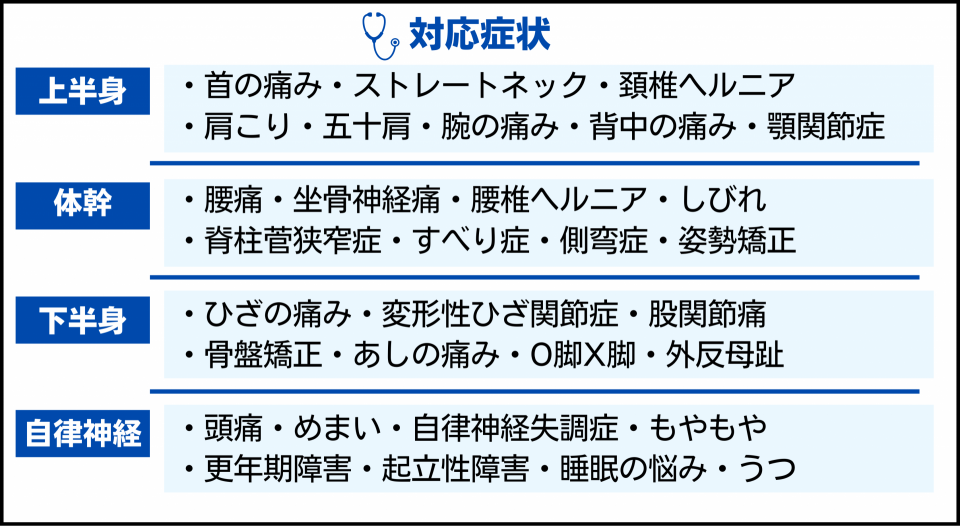 三ヶ月以上続く痛み・しびれ、慢性的な不調や自律神経の乱れでお悩みの方へ。