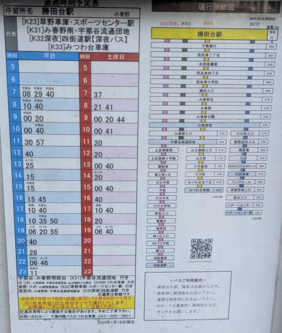 勝田台駅~【み春野南】当院の最寄りバス亭行き