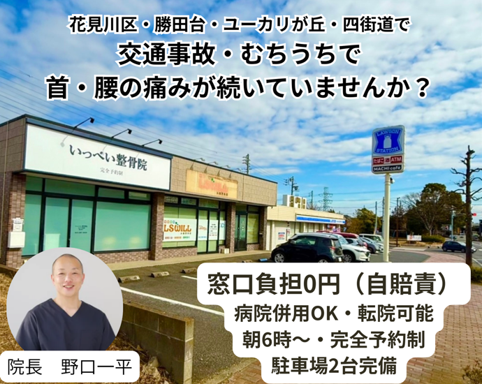 いっぺい整骨院では交通事故治療が自己負担なしで受けられます。
